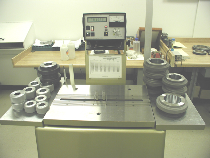 這是一臺在全球很多校準實驗室采用的標定環(huán)規(guī)的計量設備??梢杂糜跈z定ASME X,XX,XXX級精度的環(huán)規(guī),相當于可以檢定國內(nèi)二等環(huán)規(guī)。 通過一整套完善的量值傳遞機構可以快速精確的找到環(huán)規(guī)的直徑拐點,這其中其最大作用的是兩只消除了摩擦力影響的位移傳感器。這是一臺可以測量百萬分之一級內(nèi)外尺寸的儀器,同時可以用來測量一些高精度的盤類零件。